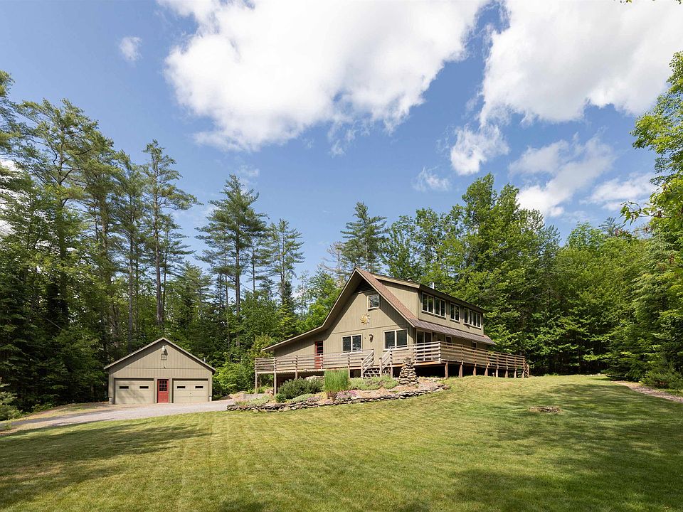 Nicely maintained two bedroom, one bath home sited on 17+/- acres in Orford, NH. The main floor offers an open kitchen, dining, living with cathedral ceiling and a wood burning stove. Finishing the main floor are two bedrooms and a full bath. A large wrap around deck off the dining is a great place for outdoor grilling. The second floor loft offers a spacious open feel and has so much potential for further expansion. The unfinished walkout lower level provides a utility room, laundry room and plenty of space for storage. Outside a detached two bay garage, a wood shed and covered storage. This home sits off a town maintained road with lots of privacy. Located a short distance to I-91 and approximately 40 minutes to Hanover, NH.