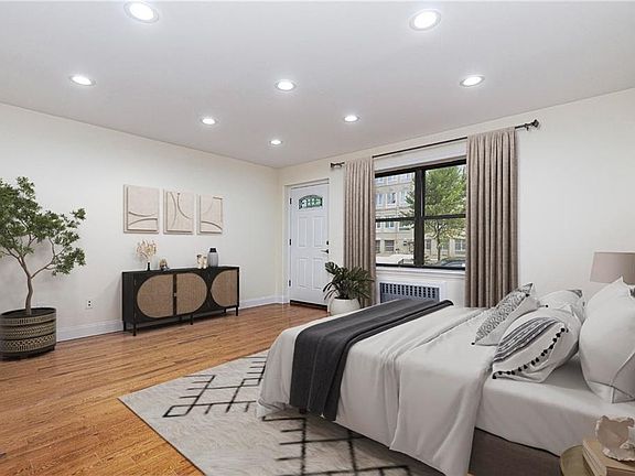 You will be impressed with the quality of the workmanship and materials that was used to renovate this building from roof to the basement floor.The second level of this brick attached building is waiting for the right family to enjoy the open concept living/dining room area which is flodded with natural light from three double-hung North facing windows. A skylight above the living room area sheds additional natural light thus reducing the use of electricity in this area. A second skylight is in the second bedroom. Two double door closets compliments the master bedroom and the second bedroom has ample closet space.The first floor entrance is on the same level at the front porch and is connected to the basement with interior stairs. This provides the perfect opportunity to use these two units as a duplex unit or separate - as the first floor level has it's own entrance/exit. The backyard is enclosed wit PVC fencing for privacy and security.The address is close the the L train line and Broadway junction in an area of Brooklyn that is on the ascent. The home is virtually staged except for the appliances.