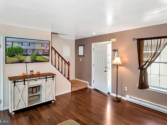 This townhome in Colonial Village in East Greenville is in move-in ready condition. The first floor layout offers a living room with neutral colors and laminate flooring as well as an eat-in kitchen with tile floor and stainless steel appliances including a dishwasher and built-in microwave. A nicely updated half bath with tile flooring and laundry and storage closets complete the floor plan of the main level. Upstairs the layout includes a main bedroom with a walk-in closet, two additional bedrooms, and a full hall bath with tile floor, tile tub/shower, and an updated vanity and sink. There are pull down stairs to the attic for storage space. The windows on the second floor were new in 2019. The home is decorated in neutral colors. The backyard is fenced and the neighborhood includes a playground, basketball court, and a skate park. Property is serviced by public water and public sewer, and there are no HOA fees in this neighborhood. This home is conveniently located to major roads including the Quakertown interchange of the PA Turnpike