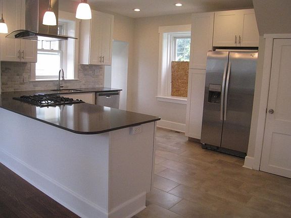 Beautiful home is completely redone and everything is brand new. Enter open front porch with wooden deck on side thru to a large living room with an open floorplan. The large brand new kitchen has a stainless gas stove with a large stainless hood, a built in microwave, new stainless refrigerator, and a stainless dishwasher. The cabinets are bright and beautiful with Quartz counter tops. The first floor has all hardwood flooring with ceramic tile in the kitchen. 2nd floor has master suite with its own bath with ceramic tile stall shower and double sinks. There are two additional bedrooms with a new hall bath with dual vanity and full ceramic tile tub. In the hallway there is a full sized stainless steel washer dryer combo. This home has been fully updated like new construction. All new water lines and drain lines and all new electric within the entire home. There is also new central air conditioning and new ducts. In the basement there is a new 200 amp electrical service and all new electrical wiring everywhere in the house. You will also love the state of the art electrical lights with high hats all over the home. This home has an oversized detached garage and a driveway for two cars. Ready for you to move in and enjoy.