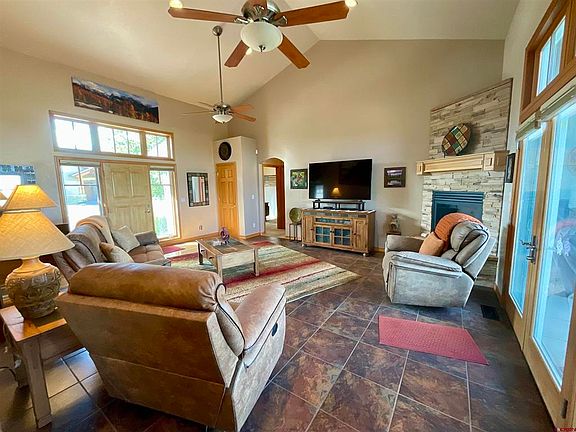 Welcome to Cobble Creek Golf Community in beautiful Montrose, Colorado! This stunning 2,130 sq. ft. home combines comfort, style, and thoughtful design. Featuring 3 bedrooms, 2.5 baths, and a vaulted living room ceiling with a cozy gas fireplace, this home is perfect for both relaxing and entertaining. The custom kitchen is a chef’s delight, offering granite countertops, stainless steel appliances, a beverage refrigerator, and a charming breakfast nook with views of the backyard and golf course. A formal dining room adds an elegant touch, while a spacious bonus room upstairs provides the ideal space for a private office or guest suite. Step outside to your own retreat—double doors from the living room open to a large patio with a hot tub, overlooking the 16th hole and capturing breathtaking views of the Grand Mesa to the north. The fenced backyard and meticulously maintained landscaping create a private, serene setting. Additional features include a 3-car garage with attic storage accessible by pull-down ladder, complete with an electric pulley system for heavier items. The home is equipped with surround sound throughout, security system and ring camera. This home blends golf course living with everyday comfort—don’t miss the opportunity to make it yours!