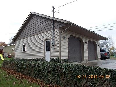 Large vinyl sided, 1.5 story home offering 4 bedrooms, 1.5 baths, gas fireplace, first floor laundry, walk-in closet, sunroom, spacious rear deack. Also nice 2 stall detached garage. Property needs some TLC. Being sold "as is" and "no warranty".