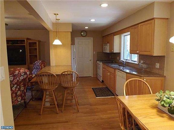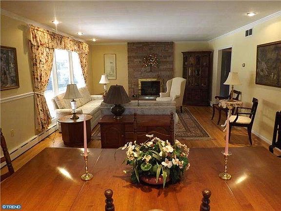 Expansive 3 bedroom, 2.5 bathroom ranch in desirable River Bank development. Walk to the Delaware River. Nestled on an oversized lot w ith privacy for entertaining your guests. As you enter through the front door your eyes are met to a front entrance with wainscoating and flagstone floor. Granite counters and tile backsplash adorn the eat-in kitchen. Hardwood flooring throughout the home with the exception of two of the bedrooms. The den/family room adjacent to the kitchen provides great space for unwinding. The living room receives natural light with large windows looking out to the back yard. Also for your pleasure a wood burning fireplace with marble and floor to ceiling stone will keep this area warm on those chilly nights. Leading out to the rear yard you will want to stop and enjoy the sun room. This three season room has ceramic floors, wood ceiling, wall electric heater, plenty of windows and french doors leading back to the dining/living room. Exiting the sun room there is a nice sized covered brick patio is perfect for entertaining. The main bedroom looks out to the rear yard (newer windows)and includes hardwood floors and a walk-in closet. The basement has three large rooms, one with ceramic floors, a fireplace (gas)and wood burning stove. The other two rooms could be a workshop or storage. Additional storage is provided with pull down stairs to attic space. There is a deck off the kitchen to enjoy the various seasons. The exterior of the home is brick and includes an attached two car garage with a circular driveway. Please schedule your appt. today to preview this outstanding home.