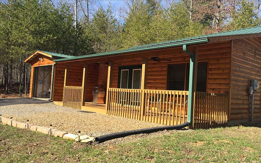 Murphy NC- FURNISHED Lovely, Immaculate 1 bedroom, 1 bathroom Ranch Style Log Cabin in wooded setting. 2 Lots, Pole Barn, 1 Car Garage, Covered Deck on Front of Home! This Home has just the right amount of space for your weekend retreat or your permanent residence! Flat land with beautiful hardwoods. Open Kitchen with Center Island flows into your great room with stacked stone fireplace. Porch is wonderful to sit and relax watching the deer play on your adjacent lot. Come see this quaint home today!