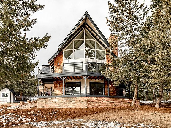 Exquisite mountain escape with sweeping views of the front range. This property is a ten-minute easy drive up Lee Hill and nestled on two acres of mature pines and outcroppings. Your new home is a private refuge yet is just minutes away from everything in Boulder. A grand flagstone staircase leads you to the double wrap around decks, all with contemporary railings. The home includes a gourmet kitchen, with quartz counter tops, large kitchen island, high-end appliances, walk in pantry, and window seating coffee bar. The great room includes an open dining concept, living area and double patio doors out to the front deck. This level also includes two bedrooms with private access to the rear back deck (great for subletting a room or adult companions), a full bath, and a separate laundry/mud room with access to the southern deck. Upstairs is the cozy master bedroom, with a retreat area overlooking the main living space and vast views of the eastern horizon! A three-quarter bath with double sinks, and wall to wall closets complete the master suite. The lower level includes a second living space with walk outs to the lower deck, bar area, half bath, office or fourth bedroom, and utility/storage room. The lower level offers easy expansion to allow for in-law quarters and an additional full bathroom. The lower deck leads to a trail that takes you down to the loafing shed and horse area. This property also offers a second gated driveway to allow for horse trailer access to the loafing shed or for the Buyer to build a large detached garage and have tertiary parking. The property also offers a well shed, an oversized two car garage and ample parking in the driveway.