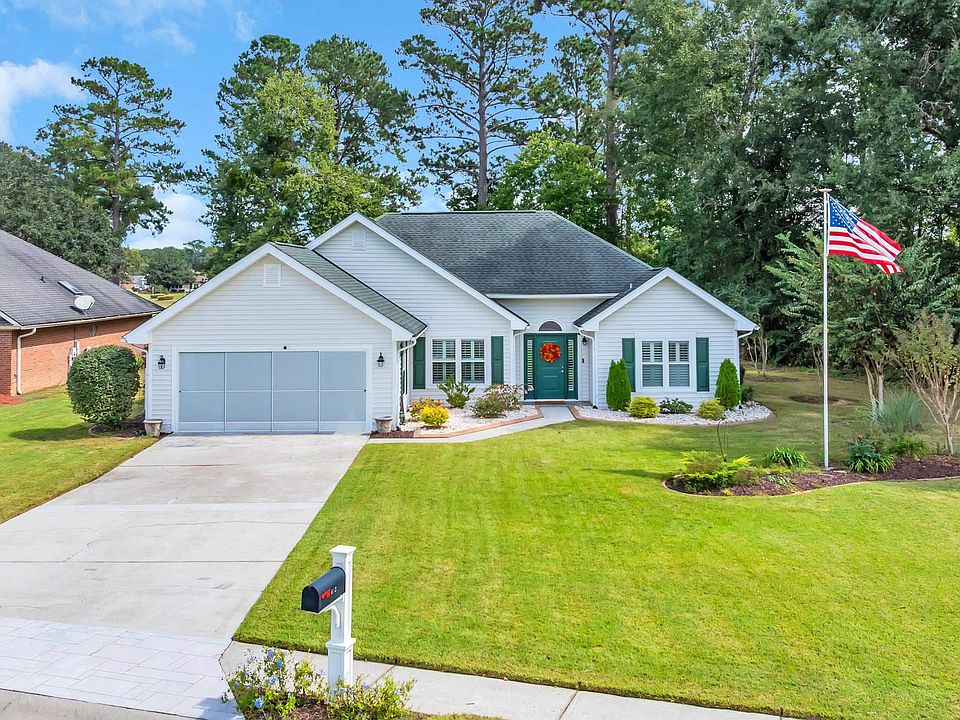 Welcome to 442 Deer Watch Circle, a charming 2 bedroom 2 bathroom ranch located in the highly desirable community, on golf course. This open concept home features a beautiful Carolina room addition on backside of home, a large patio that opens up to a wide back yard with a golf course view, a fireplace and a two-car garage. Upgraded kitchen with stainless steel appliances, deep sink, quartz countertops and bar overhang for barstools. Plenty of light is brought in and fills the dining/living combo area with vaulted ceilings to create an expansive atmosphere. Plantation Shutters throughout home to add additional style and privacy. The primary bedroom features tray ceilings while the primary bathroom has two separate upgraded vanities with large tiled shower. Washer and dryer convey. Aberdeen is a golf course community that also offers a community pool and clubhouse for its homeowners and allows long term rentals. Schedule your showing today! Located within a short +/- 20 min drive to the beach, meanwhile being minutes from all major highways and hospitals.