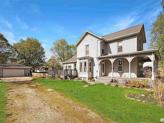 Preserving the 1800s, enjoy this beautifully maintained historic home updated in all the right places. Character galore, from the hand-carved wooden trim squares at every window and door to the incredible colors of the stain glass windows. Enjoy the wrap-around porch on those country summer days overlooking the expansive 205 X 110 fenced-in yard. 2.5-car garage with office space and extra overhead storage. Full kitchen remodel with new stainless-steel appliances, lighting, countertops, ceramic tile floors, and cabinets. Dont miss the pantry with 1800s built-ins to finish off the perfect kitchen. Major updates include roof, replacement windows throughout the upstairs, replacement doors, refinished hardwood floors, furnace, siding, electrical, and plumbing.