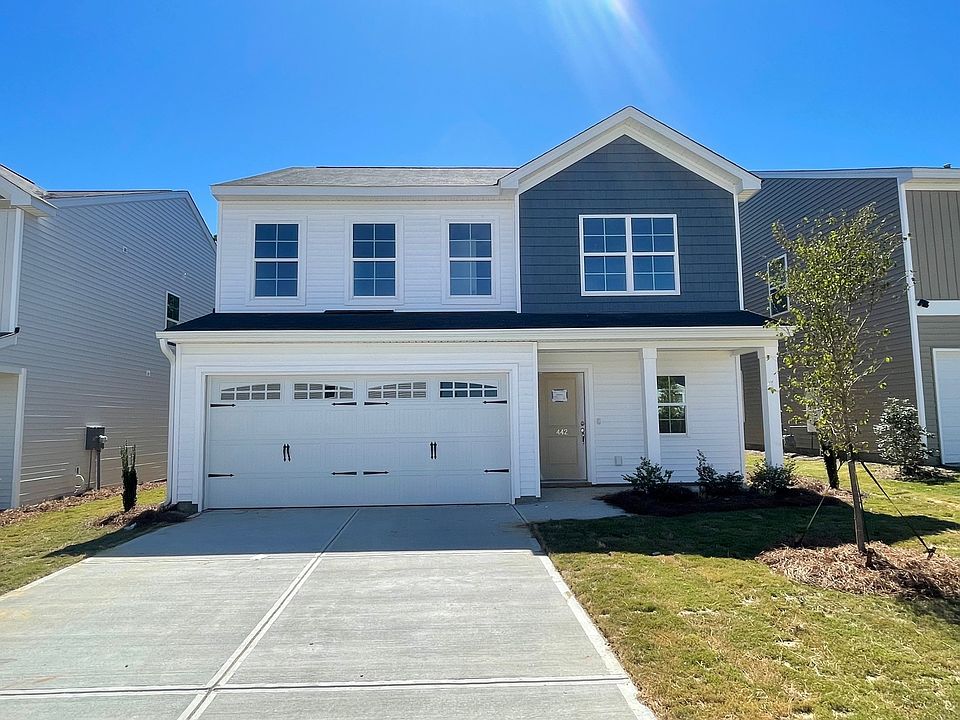 The Monroe is a charming primary on the main home with five bedrooms, and two and one-half bathrooms. Come inside and see the openness and flow of the downstairs living spaces. A dining area sits next to the kitchen, and you'll notice it as soon as you walk into the home! The kitchen opens up to the great room and eat-in area. Smooth granite lined kitchen countertops are accentuated by white cabinetry for a coastal and bright design. Hardwood-style luxury vinyl plank flooring lines all the downstairs common areas and powder room. Step into the primary bedroom which features a large walk-in shower, dual vanities and a roomy walk-in-closet. We've added cabinets above your washer and dryer for a beautiful finishing touch, and a covered porch to enjoy your backyard!