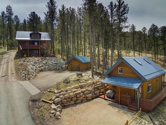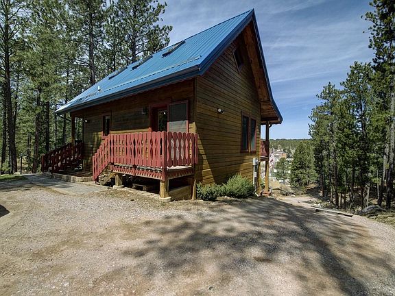 Cute alpine style 3 level home built in 2008 and a guest or rental cabin that was built in 2017. Unbelievable views overlooking Custer, the Buckhorn Mountain Range and of the surrounding area. End of the road privacy. Total of .54 acres with wooded areas to the south and east sides of the property. Wrap around deck. Detached two car garage. The small cabin is currently rented month-to-month. Less than two blocks to downtown Custer. French Creek and the Michelson Trail are just a stone's throw away. Immediate possession is possible. Priced to sell.