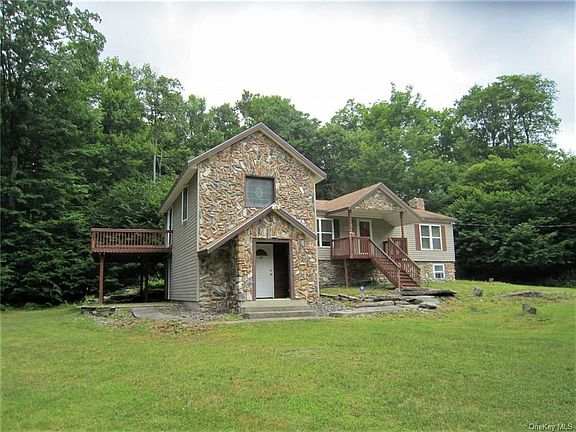 Newly renovated 2900 sq ft home steps from Swinging Bridge Reservoir access for swimming boating, fishing. Access is swing bridge overlook steps away from the home with dock space and picnic area, all for $84 a month. One of the best access areas. Home privately set behind treeline on 5 acres. Lovely yard with the rest being wooded. Lower floor has bedroom with woodstove against a full stone wall, full bath and living area. Lovely stair case to main level with open floor plan of living room kitchen and dining area. Extra area for additional bedroom if needed. Down the hall is the master suite with amazing jacuzzi for relaxing. Hardwood floors throughout main level. Fireplace for cool nights. Great house for a get away, for privacy and relaxation. Close to Resorts Casino, Bethel Woods Performing Arts Center. Short drive to delaware river and all the river towns. Come take a look.