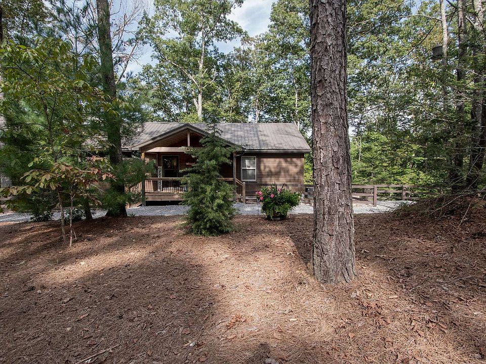 LIKE NEW FULLY FURNISHED Cabin in the woods. Built in 2021,3 bedrooms, 2 bath. State road frontage with a circle drive and detailed landscaping. Fenced perfect for your pets. Inside this home features hardwood floors, custom cabinets, leathered granite counters in kitchen, stacked stone fireplace, sliding glass doors. Master bedroom with walk-in closet, double vanity, tile shower. This is an energy efficient Sips home. Call Agent for details. You have to see to believe the detail in this Cabin!