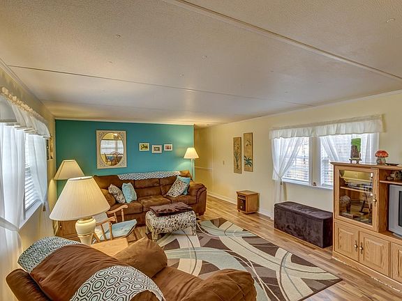 This lovely well-maintained manufactured home with addition has had all the right upgrades over the years - new windows, new smart siding, metal roof, asphalt driveway, concrete sidewalks, and 2 tiered covered deck to enjoy the variety of trees surrounding the home! It even has 2 x 6 walls and 6 inch insulation. Interior is lovely with laminate flooring, and feels cozy with a gas fireplace and gas heat. There is central air too for those hot summer days!