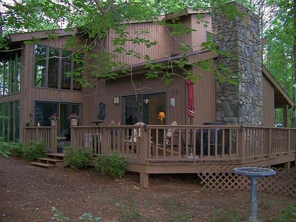 All the windows bring nature into this 3BR/2.5BA contemporary style immaculate home located in Jarrett Hills with summer shade and winter views. Stone fireplace with gas logs in living room, updated kitchen and bathrooms, spacious bedrooms and a wonderful sunroom with wraparound windows, 2 zone thermostatically controlled central heat and air, wraparound deck, covered porch, 2 car garage with workshop area, wooded lot, concrete driveway & paved subdivision roads provide easy access to Waynesville, Cherokee & Franklin via routes 441, 23 & 74. 8 miles to Western Carolina University.