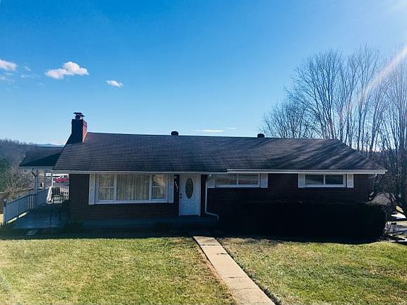 This lovely 3 bedroom brick ranch sits on a large corner lot. The home has been updated with new paint, kitchen, fixtures, tile, and is ready to move right in at close. It features 2 fireplaces, beautiful hardwood floors, granite counters, and new appliances. The covered side porch is located off the kitchen with views of the mountains. The full finished basement has office space, family room, and a full bath. Call me today for your showing. The Bench Vise on workbench will not convey nor will curtains convey.