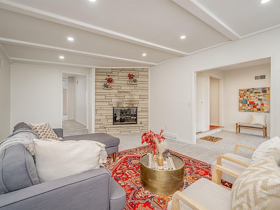 Welcome to the epitome of modern elegance in the heart of The Village! This impeccably updated mid-century modern home seamlessly combines timeless design with contemporary luxury, offering a lifestyle of sophistication and comfort. As you enter, be greeted by the warm glow of natural light dancing across the original hardwood floors that have been lovingly restored to their former glory. The spacious living area features clean lines, vaulted ceilings, and large windows that create a seamless connection to the surrounding patios and pool outdoors. The heart of this home is the stunning kitchen, adorned with quartzite countertops that provide a sleek and durable surface for culinary adventures. Top-of-the-line stainless steel appliances and custom cabinetry make this kitchen a chef's dream, while a large bar for entertaining. In the cozy informal living room, you'll find a stone fireplace that is warm and inviting. This residence boasts four bedrooms, each carefully designed to provide a tranquil retreat. One bedroom located more privately creating a perfect space for an office. The master suite is a haven of relaxation, complete with an ensuite bathroom. Main floor laundry, attached two car garage make this ranch home a perfect fit for a growing family or retirees. Don't miss the opportunity to own a piece of mid-century modern perfection!
