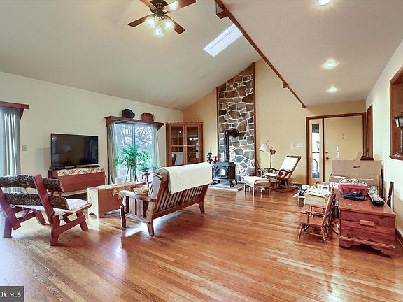 Welcome to your "rustic, mountain" type, 2200 sq ft home with a vaulted ceiling main and 2nd floor and an additional finished 900 sq ft daylight basement great room. 2.3 acres homesite is set in East Earl Twp farm country. The Main house features modern and well maintained amenities including: New Central Air Unit (2022), New Roof (2016), Hardwood floors on main floor, Skylights, Great view overlooking the Conestoga Creek, Wood Stove on Handcrafted Stone Hearth and Chimney, Ceiling Fans, Large Eat In Kitchen (Breakfast Bar/Island, Double Sink, Appliances), and more. The main floor also features the Primary Bedroom (Large Deep Closets), and Main Bathroom with attached Hot Tub Room. The second floor has full house width balcony overlooking the spacious main floor living area, 2 sizeable bedrooms with Jack and Jill bathroom, and access to abundant "Attic" storage. The remaining 2.3 acres is completed with 2 Summer Cabins, 2 outbuildings (oversized 2 car bank barn/garage, & "Boat" house), hand pump well on cabins' brick patio, abundant "forest trees" and several fruit trees, previous Koy pond and fountain (not functioning), and more. You will also find abundant flowers and Fawna come springtime as well as seeing the numerous songbirds and woodpeckers visiting the large decks bird feeders. Make your appointment today to see this Eastern Lancaster County farmland "mountainesque" paradise.