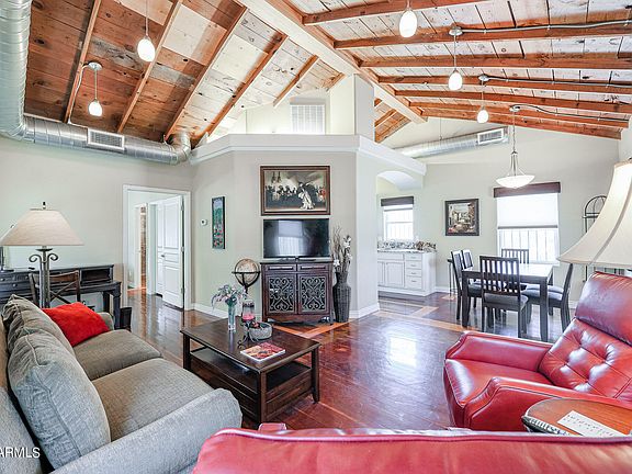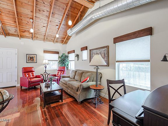 Beautifully rebuilt furnished home - completely permitted remodel from top to bottom in 2014 excluding walls, floors and ceilings. Amazing wood plank vaulted ceilings and exposed ductwork! Original refinished hardwood flooring! Roof, plumbing, electrical, AC all completely new in 2014! Water heater replaced approx 2 years ago! White galley kitchen cabs with granite counters & stainless steel appliances! Bedroom has walk in closet & remodeled bathroom with tile surround shower! All furniture & furnishings included on a separate bill of sale. Insulated one car garage (could easily be converted to add an additional bedroom.) Exterior has a beautiful brick finish with paver driveway. Backyard has a covered patio and desert landscaping. Adjacent lot also for sale please see MLS #6568053