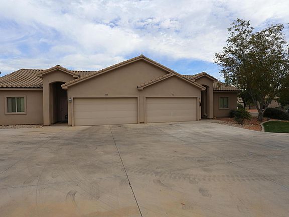 This SUPER clean, duplex style, 1 lvl, 3 bed, 2 bath, 2 car grg, home is a great buy. Lndry rm has cabinets, kitchen has pantry. Great location in Hurricane w/no backyard neighbors. Short walk to Sky Mtn. Golf Course, & close to Walmart. It's plumbed for a gas grill on the patio. New floors & paint. Just 4 mins away is the beautiful Grandpa's Pond, great for fishing, walks and enjoying nature