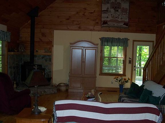 GET AWAY FROM IT ALL - with this mountain top cabin. Sits on 3.59 wooded acres with 360 degree view in the winter and in the summer the trees will keep you cool. Bedroom & bath on main level, Loft can have second & third bedroom with bath in the middle. Wood floors through out, tile in downstairs bathroom. Great room has wood burning stove with a stone hearth. T & G walls with some drywall. Large outside decks, outside fire pit, detached workshop with lots of storage. Short walk to the Toccoa River & National Forest.