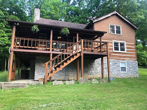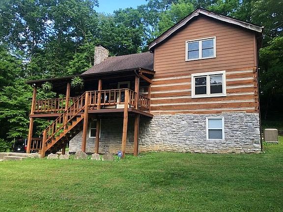 Peaceful and beautiful 1.5 story move in ready log home that sits on 4.3 acres with 5 bedrooms and 2 baths. This home backs up to the Kentucky River and is 5.5 miles from the Herrington Lake Marina. 10-15 minutes to Nicholasville. You will love the hardwood floors, stainless kitchen appliances, wrap around deck, and wood burning stove in the basement. Motion sensor flood lights on front and sides of home. Lot of wildlife - deer and turkeys. You will love sitting on the wrap-a-round deck in the early morning, late afternoon, or anytime reading or just enjoying the peaceful atmosphere.