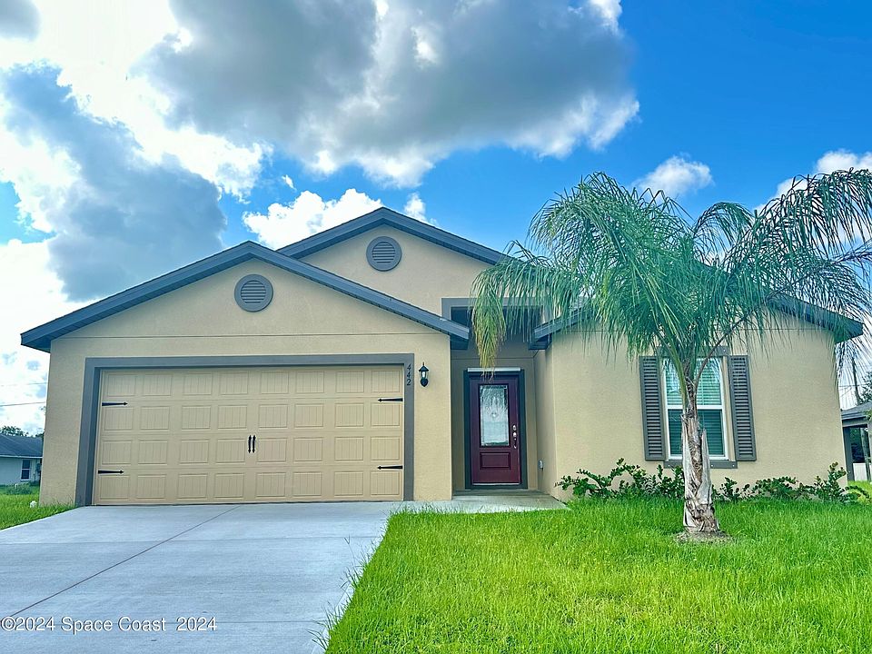 Ask us about our 3.5% interest rate incentives, builder paid closing costs, & no down payment options! Located within the highly sought-after area of Palm Bay, the Capri is more than move in ready. This one-story home features an open-concept floor plan, 5 bedrooms and 3 full baths complete with over $10,000 in upgrades. including energy-efficient Whilrpool® appliances, sprawling granite countertops in the kitchen, beautiful wood cabinets, brushed nickel hardware and an attached two-car garage. The Capri also consists of a covered back patio, front yard landscaping and a master suite complete with a massive walk-in closet. Best of all, Palm Bay offers residents a premier location with convenient access to nearby golf courses, world-class area beaches and amenity-packed parks. This home is located in a nice neighborhood and currently has no neighbors to the left of the home. **appliance models are subject to availability**