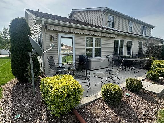 Consisting of a one and half story frame/ vinyl siding/stone front condominium dwelling- having storm windows and doors, asphalt single roof all public utilities (Water, Sewage, natural gas heat and cable internet service. First Floor: Consisting of a spacious very nice eat-in kitchen with cherry kitchen cupboards/cabinets, quartz countertops, and kitchen island, all appliances are included in property sale, ( Whirlpool 28 cubic foot refrigerator/freezer with water dispenser, flat top electric range, microwave, and built in dishwasher), Kitchen also shares a utility room with stackable washer and dryer utility sink: Adjacent large open floor plan living/dining room, newly added small office area with a half bath room; A rear family room featuring a gas fireplace with French style pocket doors, and sliding doors leading to an enclosed sunroom; Adjacent oversized patio with remote controlled electric awning; First floor has an oversized bedroom with double closets and full bath with linen closets; Second floor bedroom features a large on-suite full bath with linen closets and large walk-in closet; Garage: Oversized to two car garage with utility closet and storage closet. The condominium is in excellent condition and is ready for new buyers.