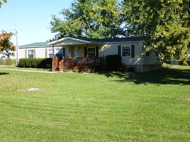 BANG FOR THE BUCK. *Not your average manufactured home on a foundation* - LOTS of amenities and nice newer upgrades including: Quiet country road in Peonia, Landscaped, Newer metal roof, Nice covered treated wood porches front and back, Upgraded exterior plywood sheeting, Added insulation all around, Breaker box with residential-grade insulated wiring, Newer vinyl siding, Newer vinyl storm windows (with pop-out feature), New carpet and laminate flooring, Newer septic (2010), New 3-year old efficient HVAC (Heat-pump/AC), 24x28 insulated metal garage with concrete floor and electric, Second 15x24 outbuilding, metal roof, concrete floor and electric, Propane (full tank) for cooking and heat, Additional Large propane heater in living room, Mature trees (multiple), Spacious large acre, Grapes, Huge garden spot, Minutes from Nolin Lake, Appliances: Dishwasher included, gas AND electric range hookups (pictured gas range not included), Split floor plan, Lots of new interior paint, Clean and smoke-free. Current annual insurance $689.00. Annual property taxes $539.00. Note to out-of-area buyers: Don't be discouraged by tough national manufactured home lending standards. Around here, you just have to go with a local lender. They know this market and write loans on these kinds of homes all day long. 15-year financing is available at fantastic rates through Fort Knox Federal Credit Union (easy to join with rates in the low 3% range OAC), Farm Credit (4% range), or Bank of Clarkson... or bring a lender of your choosing. We have Fort Knox - previous owners had BOC. Home title has been converted to real estate and is on the deed. Relocating out-of-state and eager to sell...call us today for a showing!