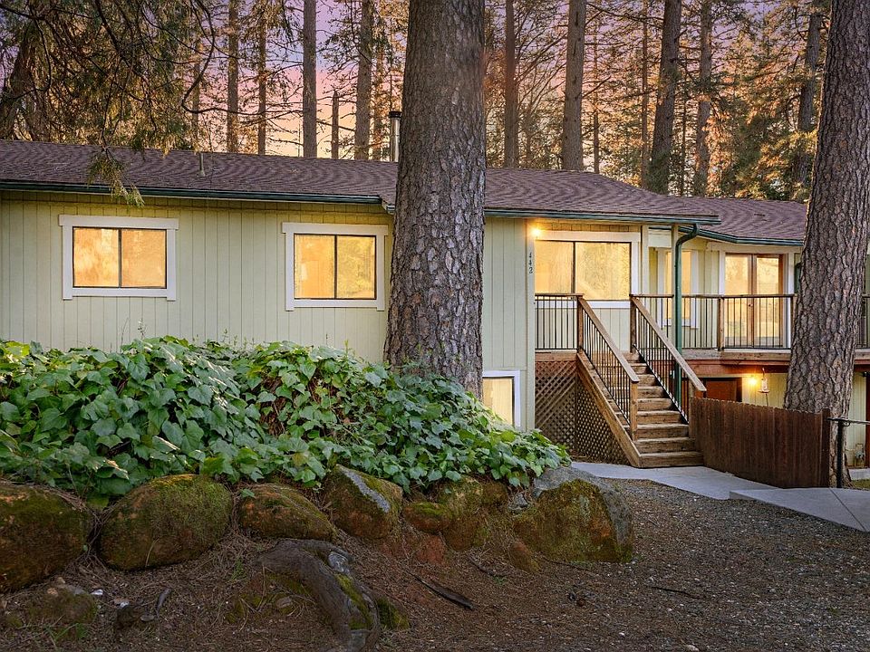 Multigenerational and income potential property! Nestled on a quiet street with plenty of privacy and parking, on over a third of an acre with a secluded backyard, this home offers 2550 square feet with the possibility of being two separate units with several different configurations. Upstairs is a complete three bed, two bath home with high ceilings, new paint throughout, new kitchen floors and freshly painted cabinets. Wake up to the morning light streaming into the spacious Primary bedroom with a large walk-in closet. And, enjoy your morning coffee by the cozy wood stove or from the expansive private deck, just off the kitchen, also perfect for entertaining or dining al fresco. Downstairs, you have an additional two bedrooms with an updated bath and updated kitchen, plus direct backyard access. Owners previously received $2100 for the upstairs (from a long-time tenant) and $1450 for the downstairs. Tucked into the trees, but still all within walking distance of charming downtown Grass Valley, Memorial Park, AND miles of trails at Empire Mine Historic State Park! Use the address as a url for the video.