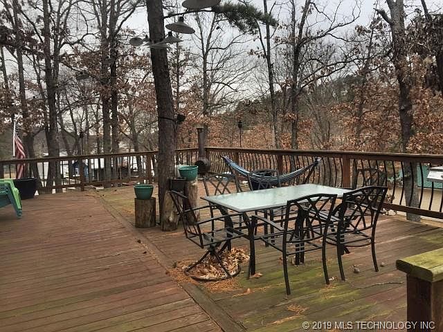 Fun cabin in Dripping Springs with all the comforts of a Grand Lake Getaway. Island kitchen, fireplace, large wraparound deck, wood beams, full bath down, 1/2 bath up. Storage building and view of cove. Extra lot included and priced to sell. Affordable way to start enjoying the lake.