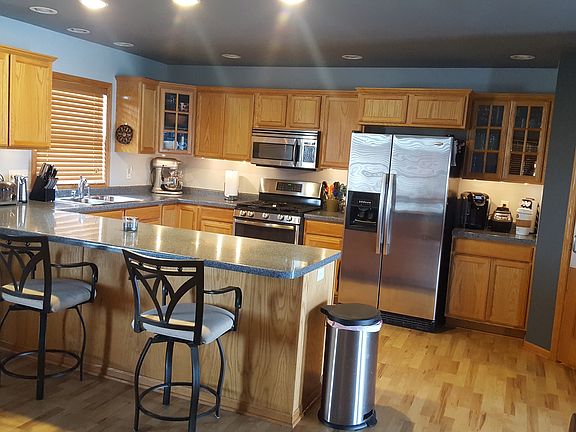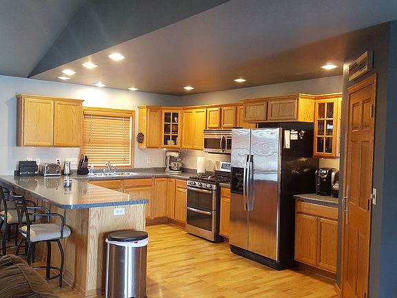MOVE-IN READY WALKOUT RANCH in Valders! Built in 2005, HUGE front porch & a patio with hot tub plug by the walkout patio door in the LL! Nice open concept w/vaulted ceilings, DA/KT/LR combo, GIGANTIC walk-in pantry in KT, all appliances incl. Floor to ceiling brick gas fireplace and open staircase to LL. Master suite w/huge walk-in closet & master BA w/tiled shower, double sinks & in-floor heating..NICE! 1st floor laundry rm w/tiled floors along w/.5 bath. LL has super-sized rec room, full windows & patio door out to private backyard, full bath w/tiled floor & 2BR. Walk to school or parks