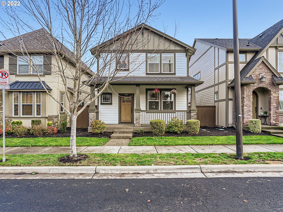 Well maintained and light-filled detached home in Baseline Woods w/tall ceilings, plentiful windows, and charming front porch. HW entry, dining, and kitchen. Slab Granite kitchen with bright maple cabinets, SS appliances, gas range, built-in microwave, and fridge. Generous dining room has slider to fenced yard w/patio & garden. Large great room with gas FP. Sunny vaulted primary suite w/spacious walk-in closet, dual vanity, and walk-in shower. Upstairs laundry. Nearby Max station and parks!