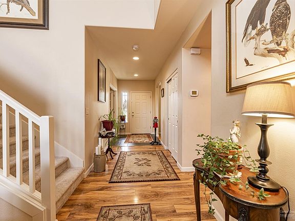 This spacious 2 story home was beautifully renovated throughout just a few years ago and impeccable maintained. Downstairs you will find an office with french doors and a large closet. The formal dining opens to kitchen with bar counter seating and large pantry. Solid surface counters with stainless steel appliances. Mudroom/laundry room from the garage has a utility sink. The great room features vaulted ceilings with newer fireplace. Laminate flooringdownstairs, plush carpeting upstairs, and tile in the bathrooms. Upstairs boasts 4 bedrooms, a full bathroom, and the spacious master suite with soaking tub. Home includes Central A/C, fully fenced backyard, and sprinkler system. Professionally landscaped. Just minutes to schools, shops, and Dry Canyon. Your chance to own a slice of Central Oregon paradise!