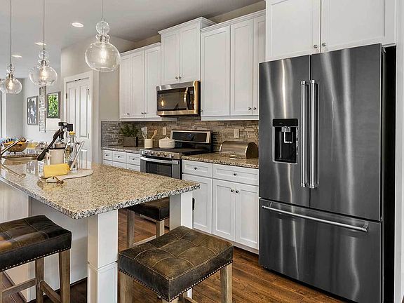 Upon entry of this amazing three level, rear-load garage, Landon townhome, you'll find a quiet bedroom and full bath adjacent the foyer.. Walk up the stairs to your light and bright main level where you're greeted with the spacious great room and a convenient powder room. In the middle of the home is a kitchen that any home chef will love with plenty of storage and countertop space, oversize island, stainless steel appliances. The beautiful owner's suite features a generous walk-in-closet and an en suite bath with dual sink vanity and walk-in, seated shower. Two secondary bedrooms, a full bath and conveniently located laundry area to fit a side-by-side washer and dryer this complete the upper level. You won't want to miss out on this fabulous Landon townhome with all the bells and whistles.Home and community information, including pricing, included features, terms, conditions, availability, and sales procedures related to appointments subject to change without notice. All images are for illustrative purposes only and individual homes, amenities, features, and views may differ. Delivery dates are approximate and subject to change without notice. Images may be subject to copyright.
