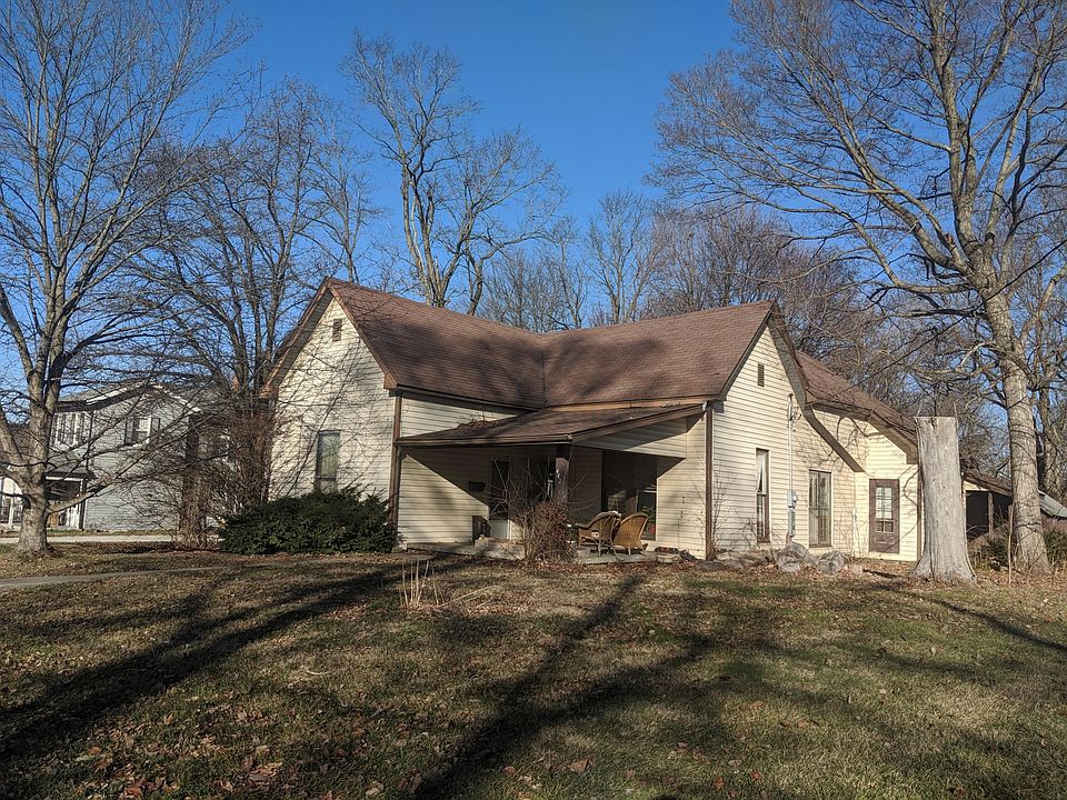 Large rooms and high ceilings make up for the odd layout. Could and has been used as a two or three bedroom. Flower beds wrap the entire house. (they do need some attention)