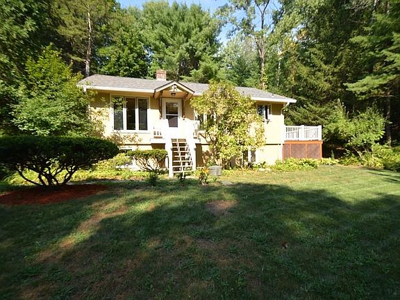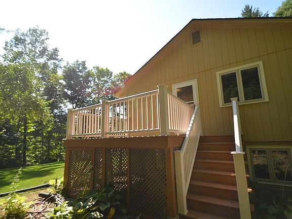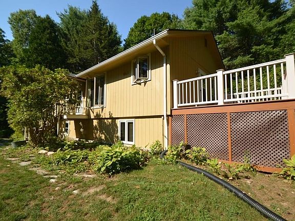 Enjoy the quiet life in this home which sports an open floor plan with living room, dining room and kitchen Living room has hardwood floors, a fireplace for those cold evenings and a slider to the back yard. Kitchen has ample cabinets pantry closet, and a wall of bookcases that can serve as additional display or storage space. Enjoy your morning coffee on the spacious deck, which is located off of the kitchen. Large master bedroom on main level and well as a full bath. Lower level offers two finished possible bedrooms, a full bath, an office space and a utility/laundry room. New septic and roof a definite plus. Exterior recently painted. Country living with an easy 10 minute commute into Amherst. Come preview.