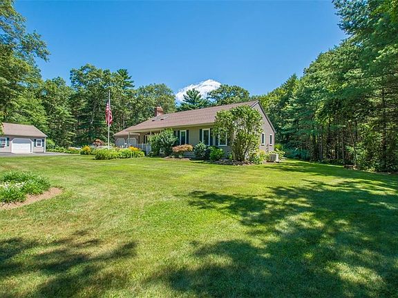 Fabulous one-level, one-owner custom home on gorgeous 4 acre lot. Bright, open layout - Great room with skylights /wood stove opens to kitchen and dining room. Vaulted ceiling and skylights in fireplaced family room with built-ins & wet bar leading to deck. Master bedroom suite with private deck overlooking perennial flower gardens. Hardwoods throughout, central A/C, fully applianced, whole-house generator, outbuilding provides 3rd garage and large workshop, new roof in 2011. This home has been set back on a lovely, landscaped, level lot with many perennial gardens. If you enjoy peace and tranquility, and are enchanted with wildlife and hummingbirds, you should view this special property--country living yet just minutes to everything! Call now for your private showing!.