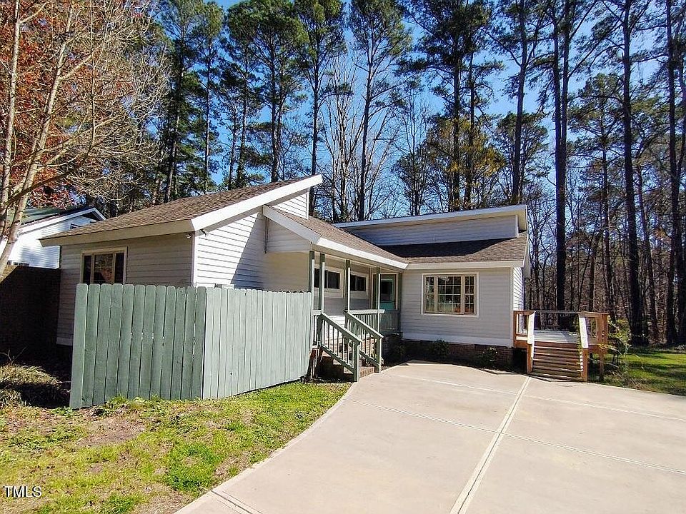 Adorable bungalow-style, 2 bed/2 bath home in gated Carolina Trace. One-level living, lives large for its size w/ high ceilings. Recent updates include roof 2020, kitchen renovations in '21 including granite countertops, stone backsplash, soft-close cabinetry, appliances, and recessed lighting. Self-contained blinds on back doors, leading to expansive wrap-around deck ('21.) Concrete drive '21. Termite bait stations w/renewable option in June. Heat pump 2017. POA dues of $715 annually. Great opportunity for first-time buyer or someone looking to downsize from larger home. **Offer deadline Sunday evening, 3/24. Seller will review all offers on Monday**