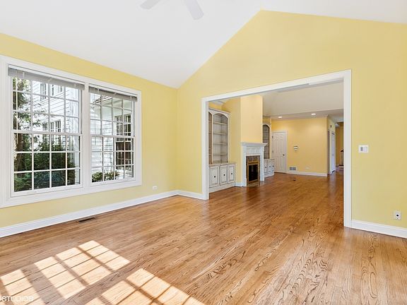 This Conway Farms townhome enjoys tremendous space and a fantastic floor plan. You will find high ceilings, wood floors, crown moldings, and sun-filled rooms. The white kitchen has a breakfast area with bay window, double ovens, and a gas cooktop. The dining room is open to living room which features a gas fireplace flanked by handsome built-ins. The family room has a cathedral ceiling and sliding doors to the charming brick patio which enjoys a southern & western exposure. The main level primary suite features a large walk-in closet and bath with double vanities and separate shower & tub. The main level also has an office or fourth bedroom with a full bathroom with walk-in shower located just outside in the hallway. The second level has two carpeted bedrooms and one full bath. Both bedrooms have walk-in attic access. The finished basement provides another additional living space finished with a wood staircase, bead board paneling, a wet bar with refrigerator, and powder room. Additional features include Anderson windows - an upgrade from builder's package, main level laundry room, and attached two-car garage. Updates include: newer roof, chimney rebuilt, driveway, and cedar siding & trim painted. This is a private location within Conway Farms as the property abuts the backyards of private homes on Saunders Road and not the tollway. Enjoy pool and tennis as well as maintenance free living at 442 Woodward Court in Conway Farms. This home will convey "as-is."