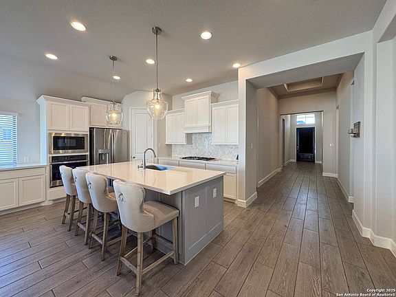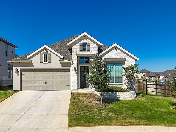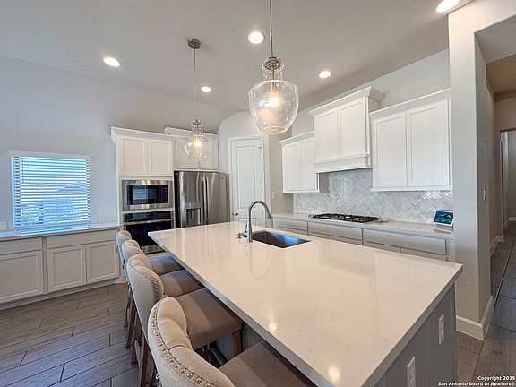 OPEN HOUSE Saturday November 8 from 12-3pm! Stunning One-Story Stucco & Stone Home in a Peaceful Gated Community Near TPC J. W Marriott San Antonio Hill Country Resort & Spa & golf course. Immaculate 4-bedroom, 3-bath home with a dedicated office/TV room and a 2-car garage, situated on a desirable corner lot. Built in 2023, this beautiful stucco home offers an open-concept design with elegant tile flooring throughout (only 3 bedrooms have carpet). The spacious kitchen features a large island with quartz countertops, abundant cabinetry for storage, and stainless steel appliances - all included. The luxurious primary suite boasts dual vanities, two walk-in closets, a walk-in shower, and a separate soaking tub, perfect for relaxing after a long day. Additional highlights include a tankless gas water heater, pre-plumbed water softener connection, and bright natural light in every room. A must see-in North San Antonio!