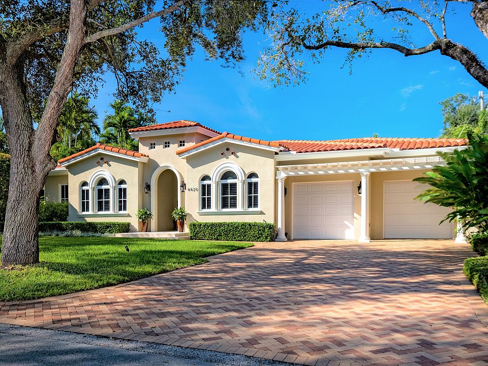 Executive living meets tropical haven! Move-in ready, single-story residence on coveted Coral Gables street features 4bd, 4ba, 3,505 total SF, newer construction (2010) & luxurious yet functional smart living spaces. Spacious interior design, soaring ceilings & 24x24 polished travertine floors create a bright floorplan that flows from one room to the next, all opening up to the tranquil courtyard pool. Mature landscaping provides complete privacy. Gas chef's kitchen offers high-end appliances & plenty of storage, perfect for those that love to cook/entertain. The sumptuous master suite boasts his/her walk-in closets & spa-like bath that presents a serene place to retire from your busy day. Full impact windows & doors! Minutes from Shops at Merrick Park, Biltmore, UM & Riviera Country Club.