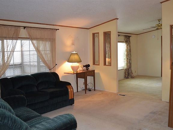 One of a kind in gated community! Spacious 3 bedroom/3 bath home with open living area. Master ensuite separate from additional bedrooms with double closets, dual sinks, and garden tub. Large walk in kitchen pantry. Beautiful built ins in dining room. Enclosed porch with nicely landscaped and fenced backyard. All age park conveniently located to shopping, schools and bus line. Sewer & water are billed with monthly rent but are not included in the $635/month rent.
