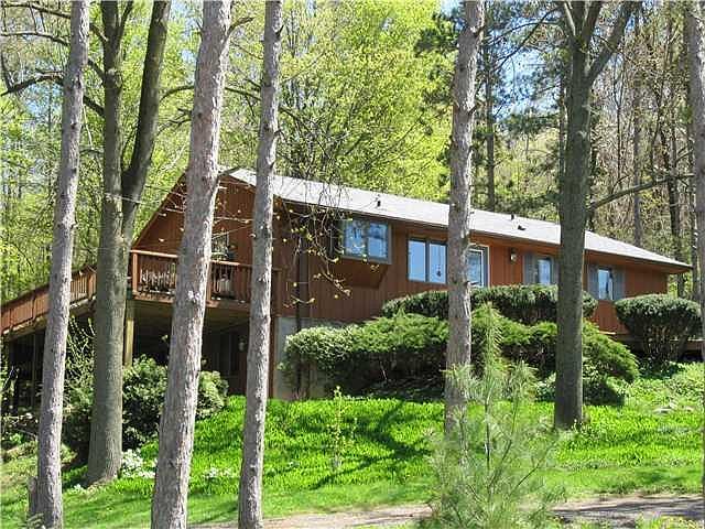 Nestled in the trees,this nature lovers paradise could be yours! Extremely wall mntnd 4BD, 2 bath (recently remodeled main bathroom) ranch has it all! 24.24 acres w/detached 2 car gar & horse stalls. A semi-wrap around deck gives you a birds eye view! Watch the sunset or sunrise. 2 wood burning fireplaces, gleaming hardwoods,roof,CA & furnace '2014'. Forml dining rm w/sliding glass doors onto deck. Vaulted ceil. in living rm w/a view of the sparkling waterfall. All appls included. Updated eat-in kit w/oak cabinets & harddwood flrs. Finished W/O basement gives added living space, possible in-law or teen suite. A horse lovers dream! Additional features: Hot tub and 14 KW whole house automatic generator for house and 2400 sqft barn with 2 stables and tack room.