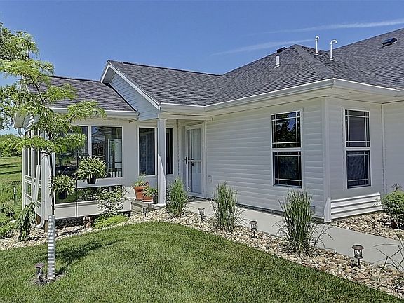 There are SO many things to love about this less-than-one-year-old condo! For starters, it’s a zero-entry home with 36-inch-wide doorways. Vaulted ceilings enhance the openness of the main living area and primary bedroom. The primary bathroom boasts dual sinks and a walk-in closet. There’s a three-sided, three-season room off the great room which is an awesome place to enjoy cool summer breezes and even bask in the warmth of sunny winter days. The partially finished lower level offers an additional gathering area / rec room, a third bedroom and third bathroom, and plenty of storage space. Being located at the western edge of this neighborhood allowed for an oversized side yard (creating a buffer between this home and future neighbors) that was beautifully landscaped by the current owner. With lawn care and snow-removal provided by the HOA, if you've been thinking about living the carefree condo life, THIS is the place!