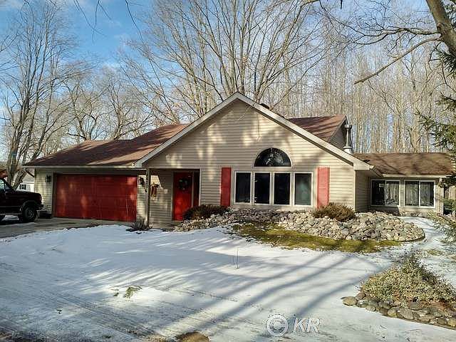 You will love this extremely well-maintained Berm style home on 1.75 acres across the street from Wiggins Lake. This lovely home features vaulted knotty pine ceilings, spacious open floor plan with open kitchen/dining/living room area, a nice all seasons sunroom, wood stove, large master suite with private full bath and very friendly floor plan. All of this sits in the middle of a wooded peninsula surrounded by a variety of wildlife. Enjoy this energy efficient home with a concrete patio with pergola, just out the sunroom door. The deep 2.5 car garage has a drop down storage area above the garage. The nice level yard offers a fantastic area to relax or entertain. You need to see this one to appreciate.