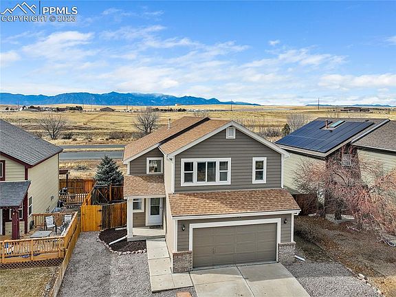 Prepare to feel right at home in this updated 2 story home located in Colorado Centre! Conveniently located close to Peterson and Fort Carson* Also a short commute to schools, shopping, and the Powers Corridor. This home has picturesque Pikes Peak views from the main level and upstairs bedroom. Attached 2 car garage. No neighbors behind this home! Walking inside you will be greeted with fresh paint throughout and an open living area with vaulted ceilings! Kitchen has newer counterops and also Stainless Steel Appliances. The Dining room walks out to the back deck. Off the kitchen is a large pantry, laundry/mudroom, and a Full bath* Heading upstairs you have 3 bedrooms. The 2 junior bedrooms share a Jack and Jill bath! The Master bedroom has vaulted ceilings and adjoins to a 5 piece bath with a large walk in shower, separated dual vanity, and a free standing shower and soaking tub! Heading into the basement you have a small rec room and 2 bedrooms. The larger bedroom in the basement has a walk in closet and a full bath too!