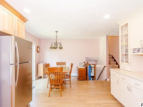Home sits off the road. Seller hunts the property. Farm land behind. Beautiful new Hickory and stained Maple kitchen with lots of cabinets and new appliances. Eating area at the slider overlooking the back yard. Lower level with fireplace in Family Room. Storage lean to for equipment. Exterior was remodeled 5 years ago with Anderson windows, vinyl siding and additional insulation.