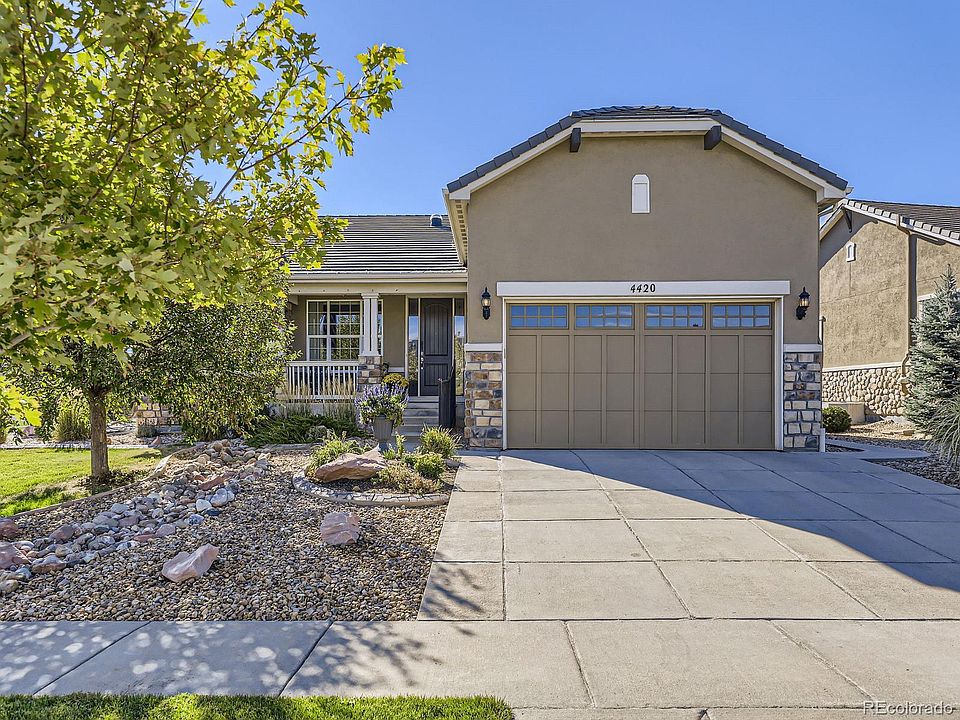 Highly Desired Anthem Ranch 55+ Ranch home on a spectacular corner lot. This gorgeous home features 2 bedrooms,2 baths, and a private office on the main floor. The living space is a spacious open floor plan connecting the living rooms, dining room, and kitchen. Tons of natural light from the large windows and the added skylight. The kitchen is ready for your finest cuisine with the gas range and double oven, granite counters and tall cabinets, ready to be shared with friends and family. The home also has a well-designed, elegant laundry room, with ample cabinets, vast counter space for folding or preparing, and a wash sink for the tough messes. The covered porches and patio are ready for you to relax and enjoy the beautiful Colorado weather. When you are ready for a refreshing slumber your primary bedroom awaits you, with a large walk-in closet, as well as your 5-piece bath, soaker tub and easy step in shower. Guests can enjoy sleeping in from their large bedroom, while you are able to get work done in the separate office. If you need more space, you must head downstairs to the 1276 sf unfinished basement, ready to be used however you see fit. There is a bonus non-conforming bathroom in the basement as well, for your convenience. When you are not enjoying your beautiful home, you may be out connecting with new friends in the neighborhood or enjoying the incredible amenities that Anthem Ranch offers.
