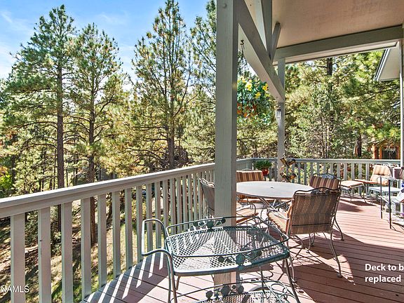 You've dreamt of your perfect Flagstaff paradise, quiet and serene, enveloped by beautiful pines, a warm, light-filled luxurious cabin that is on city utilities and close to the best amenities Flagstaff has to offer. Your dream has come true. This home is the ideal blend of cabin in the treetops and meticulous, urban home. The floorplan is tiered with two spacious living rooms, one a greatroom with soaring ceilings and a wall of windows, and one a fabulous, extra-sized family room, both with fireplaces, and both leading to beautiful, large decks. Enjoy family or entertain guests, sunlight dappling through the pines, enchanted by the sounds of birds, the wind in the trees, and the quiet. The treetops cocoon you, yet there is abundant natural light from every angle, all times of day. With 3 bedrooms, 3.5 baths, new kitchen appliances, central AC, new roof, new trex deck, in excellent condition and located on a quiet, treed street, it's perfect full-time or as a seasonal getaway. Easily walk, hike or bike Flagstaff from your home, and enjoy golf, pickleball, tennis, swimming pools, the gym and of course the fabulous social experience of the Oakmont as a member of Continental Country Club. While we love photos, you need to walk through this home and stand in every room to truly experience its unique beauty.