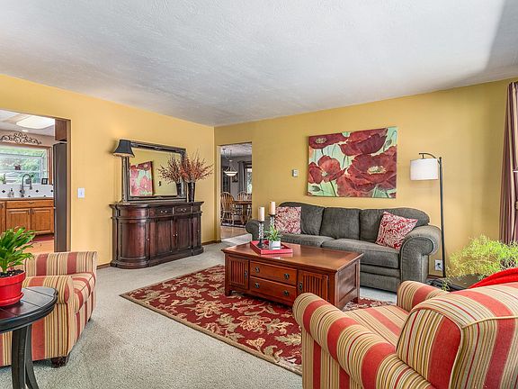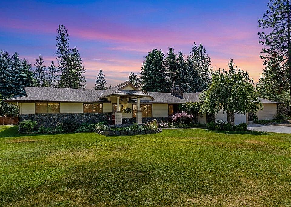 Nestled in a quiet country setting, this beautiful rancher w/basement on 2.2 spacious acres won't disappoint! Lovingly cared for 3 bed, 2 bath home offers oversized kitchen w/ abundance of cabinets & counter space open to dining & family rm w/ cozy gas fireplace. Dreamy primary suite oasis features custom cabinetry, lg walk in closet, built-in bookshelf + desk, wet bar, gas fp, spa like 5 pc bath & french doors to private patio. Basement has rec room w/ egress window & ejector pump already installed for potential 4th bedroom & 3rd bath. Outside offers everything you are looking for on acreage – garden, greenhouse, chicken coop, playhouse, shed, fire pit & lg trex deck perfect for entertaining. Beautifully landscaped yard w/fruit trees & sprinkler system to keep it looking immaculate all summer. 2 attached 2 car garages PLUS detached 3,200 sq ft shop! Peaceful & private setting only 15 minutes to shopping, & dining. Property includes all appliances, hot tub, RV parking, & Centurylink internet.