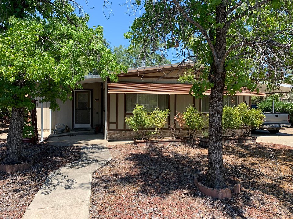 This 1980 manufactured home has a lifetime roof! Remodeled kitchen and permitted 12x30 add-on with walk-in closet. Property has a workshop and two other outbuildings. Large RV parking area. Cozy wood stove sitting against classic brick wall. Convenient location close to shopping and schools. Partly furnished, including kitchen utensils, tables, chairs, bed, etc.